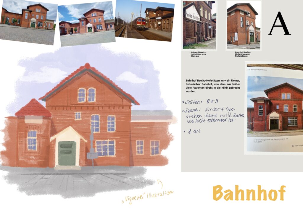 Kinder entdecken Beelitz Heilstätten. Cindy hat mich im Frühling 2025 über fiverr kontaktiert mit dem Wunsch ihre Geschichte für Kinder zu Beelitz Heilstätten mit liebevollen Illustrationen zu veröffentlichen. Kinderbuchillustration ist meine liebste Tätigkeit und ich war sehr gespannt auf die Herausforderung eines solchen Projektes.